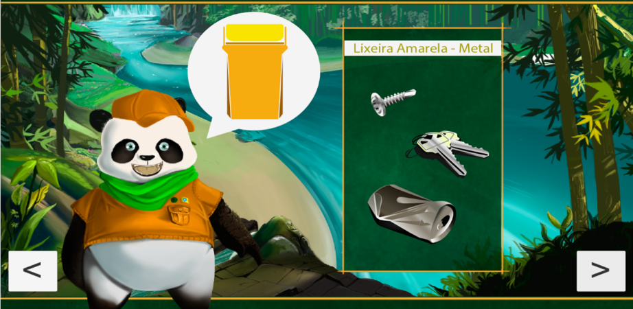 Apresentando uma mecânica de jogo da memória, o game convida os participantes a procurarem em qual lixeira cada componente deve ser jogado. Ao final, aparece a tela em que, dependendo do tempo que levou para fazer as combinações corretas, o player pode ganhar o Bamboo de Ouro, Prata ou Bronze.