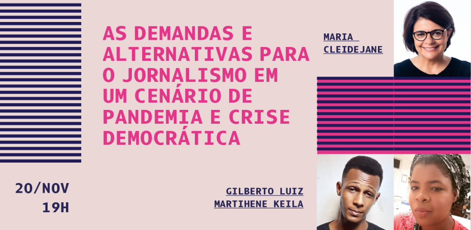 Recentemente, fatos históricos como a polarização política, os processos de desinformação e a pandemia impuseram novas demandas e práticas para os profissionais do setor. Considerando o Jornalismo como um campo social fundamental para a garantia do direito à informação da população, e a liberdade de imprensa como termômetro da democracia, o curso de Jornalismo da UNIAESO traz, para o encerramento do semestre, um debate sobre “As demandas e alternativas para o Jornalismo em um cenário de pandemia e crise democrática”, com a participação de uma das maiores organizações da área no país, a Abraji, representada por Maria Cleidejane Esperidião, e a experiência de jornalismo popular, do Sargento Perifa, em nome de Gilberto Luiz e Martihene Keila.