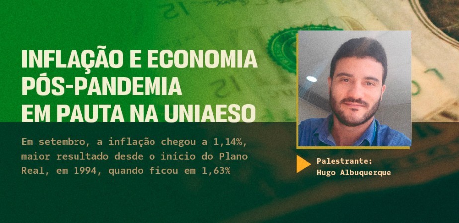 A UNIAESO promove no dia 26 de outubro às 17h, um debate com o objetivo de fornecer uma visão geral sobre a inflação no Brasil e de que estratégias as pessoas podem utilizar para minimizar os impactos. O evento é gratuito e pode ser assistido através do canal do Youtube da instituição. Alunos podem se inscrever no evento