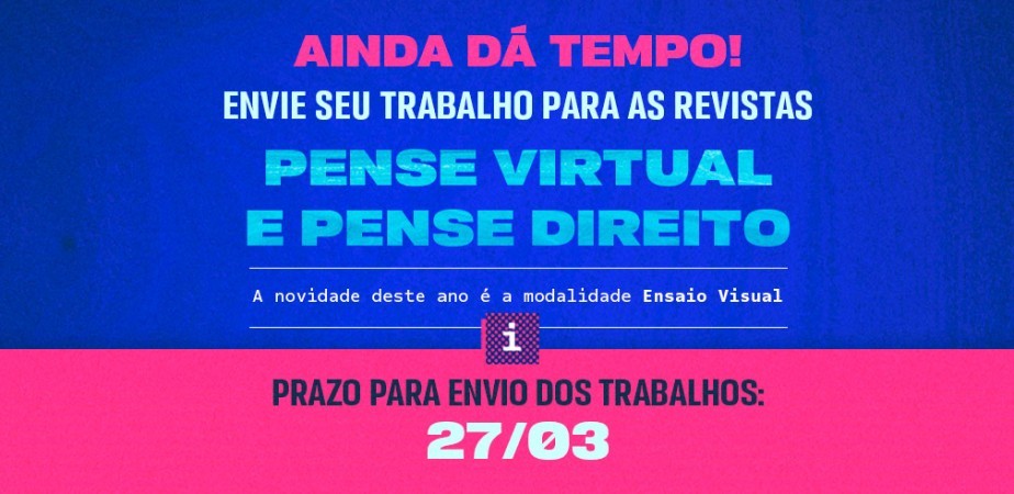 Nova oportunidade para compartilharem suas produções e trabalhos acadêmicos para as revistas Pense Virtual e Pense Direito. A coordenação de Pesquisa, Extensão e Intercâmbio do Centro Universitário AESO-Barros Melo (UNIAESO) estendeu o prazo de envio até o dia 27 de março.