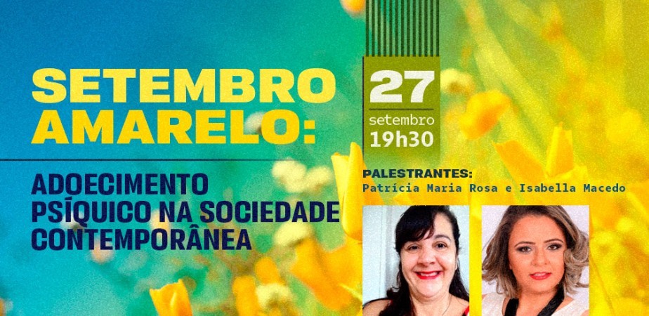 A fim de contribuir para um debate positivo em apoio à causa, a UNIAESO promove o evento online, Setembro Amarelo: Adoecimento psíquico na sociedade contemporânea, com a Psicóloga Clínica e professora de Psicologia, Isabela Macedo, e a professora de Biologia, Patrícia Maria Rosa, dia 27/09,  às 19h30. Na ocasisão, as palestrantres vão abordar as questões psicológicas e biológicas do adoecimento psíquico